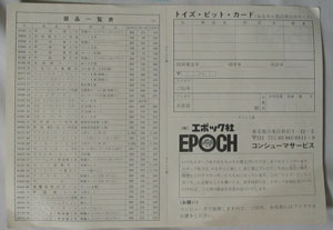 ![]() 昭和59年5月製のトイズ・ピット・カード |